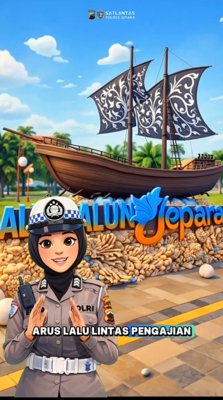 Melalui video karakter ikonik Polwan Brigadir Elysa, Satlantas Polres Jepara resmi merilis panduan rekayasa arus lalu lintas guna mendukung kelancaran acara Pengajian Akbar yang akan dipusatkan di Alun-Alun Jepara, pada Selasa (14/4/2026).